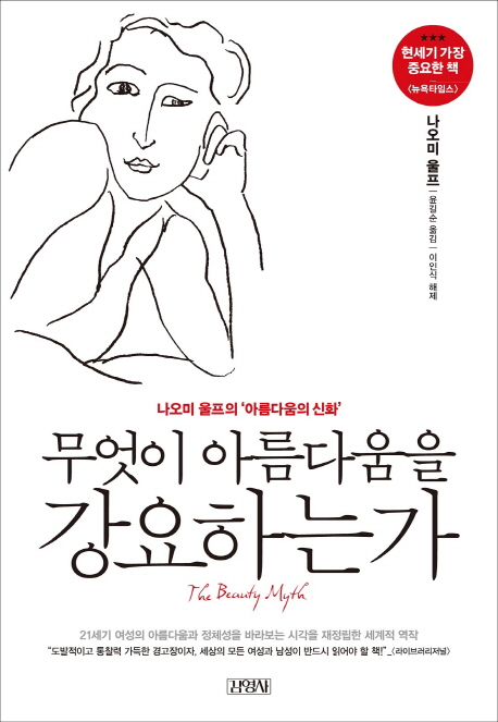 “다이어트 산업이 가장 바라지 않는 것은 여성이 한번에 영원히 날씬해지는 것이다. (…) 노화 방지 산업도 마찬가지다. 정말로 효과가 있는 제품이 있다면 (모든 여성이 자부심을 갖거나) 이 산업은 붕괴될 것이다.” 정치·산업적으로 ‘아름다움 신화’(beauty myth)를 이용해 성차별이 지속되는 문제를 고발한 명저.