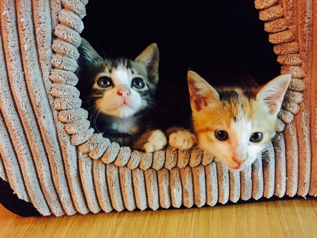 <봉구·봉지> 남편이 공장 마당에서 손님들과 고기를 구워 먹고 있을 때 고기 냄새를 맡고 찾아온 새끼고양이 두 마리. 사진을 찍어 보내왔기에 고양이를 키울까 말까 고민하던 옛 직장 상사가 떠올라 무조건 잡아두라 일렀다. 그야말로 주먹만 한 애들이었다. 태어난 지 한 달이나 됐을까 싶은 애들이 밥은 넙죽넙죽 잘 먹었다. 새 주인이 병원에 데려가보니 두 달이 넘었다고 했다. 영양 상태가 좋지 않아 제대로 크지 못했던 것이다. 남매인 이 아이들은 봉구·봉지란 이름을 얻었다. 봉구는 전형적인 바보 고양이로 집사를 하루에도 몇 번씩 빵 터지게 만든다. 봉지는 쌩한 매력 넘치는 고양이가 되어 부부의 사랑을 듬뿍 받으며 살고 있다.