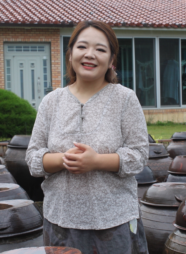 9월7일 강선아씨가 전남 보성 벌교 ‘우리원’ 농장의 장독대 사이에 서 있다. 강씨는 유기농 명인인 부모 님 밑에서 자란 자신을 “농업계의 금수저가 아니라 금호미”라고 했다.