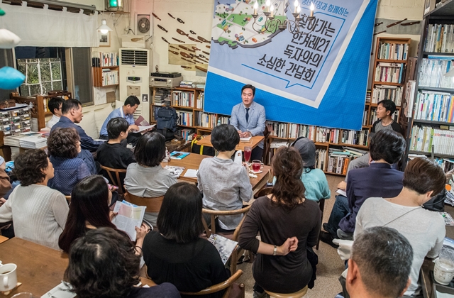 이날 저녁, 백년어서원에는 50여 명의 지역 독자와 시민이 함께했다. 좁은 좌석을 가득 메운 시민들은 백년어서원의 단골답게 수준이 높았다. 글쓰기에 대한 근본적인 질문을 던지거나 한겨레에 대한 애정 어린 조언을 하기도 했다. 서울을 제외한 지방의 경우 다양한 문화행사가 여전히 부족한 현실과 한겨레에 대한 여전한 지지를 확인하는 계기가 됐다. 서원을 찾은 손님들을 위해 김 대표는 차와 다과를 무료로 대접했다. “돈이 되지 않아도 망하지 않을 수 있다는 걸 보여주겠다”는 김 대표의 실험은 10년 가까이 실패하지 않았다.
