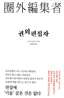 그에 따르면, 편집은 기본적으로 고독한 작업이다. 책을 만들 때 중요한 것은 기술이 아니라 어떻게든 이 책을 만들고 싶다는 강한 의지인데, 동료라는 존재는 이 의지에 도움이 되기도 하지만 때로는 방해가 되기도 한다는 것이다. 그렇다! 나 역시 회의 때마다 찬물을 미리 한 통씩 준비해 얼마나 자주 동료의 의지에 찬물을 끼얹었던가. 얼마나 많은 회의가 일에 흥을 돋우기 위해서가 아니라, 일이 실패했을 때의 핑곗거리를 마련하기 위해서 진행됐는가.