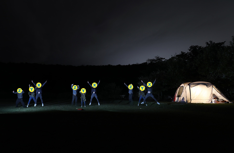 교래의 밤은 시나브로 찾아왔다. 배를 불린 뒤 늘어져 있는데 정 선배가 기사에 쓸 사진이 필요하다며 텐트 밖 잔디밭으로 나오라고 했다. 구령에 맞춰 3 포인트에 점프를 뛰라고 했다. 잔디에 누워보라고도 했다. 열 맞춰 걸어가라고도 했다. 작가주의가 따로 없었다. 그렇게 50분을 굴렀다. 아까 우리가 기다리게 한 것에 대한 복수가 분명했다. 엥간히 하시죠~.