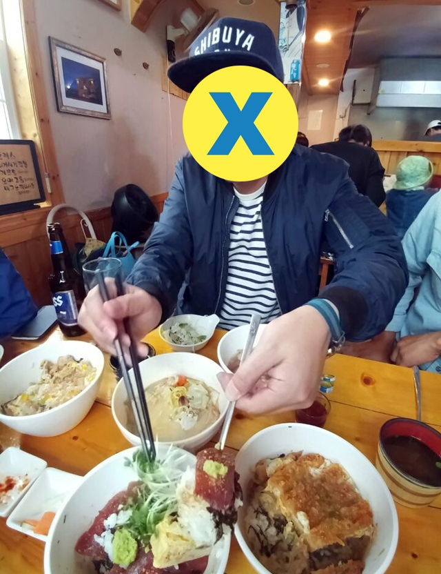 이윽고 주문한 음식들이 나왔다. 나가사키짬뽕은 적당한 탄력의 면발과 국물이 일품이었다. 무엇보다 참치회덮밥은 잊을 수 없는, 여전히 침이 고이는 맛이었다. 간장 베이스로 버무린 고시히카리 밥을 수직으로 퍼서 그 위에 참치회와 고추냉이, 무순을 얹어 입속에 집어넣었다. 짭쪼름한 밥에 부드러운 참치회가 살살 녹으면서 마지막 고추냉이의 강렬함이 잔향으로 남았다. 여기에 한라산 소맥까지 곁들이니, 캠핑이고 뭐고 계속 퍼질러 먹고만 싶었다. 곽도원은 말도 없이 밥만 먹었다. 그러다 곽도원에서 김준현 된다~.