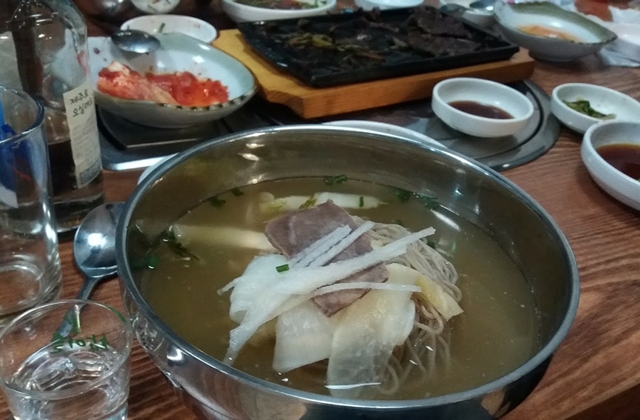 안주가 나오자 와잎은 속사포로 ‘소폭’을 말았다. 그래 누가 선주후면 아니랄까봐~. 수육 맛은 나쁘지 않았다. 4년 만의 재회에 행여 어색하지 않을까 걱정했던 내 우려는 기우였다. 둘은 오누이처럼 주거니 받거니 잘도 마셨다. 이윽고 냉면을 시킬 시간. 와잎은 육회냉면을 주문했다. “육회? 아주 유쾌하구만~”이라고 말장난을 던져도 둘은 너는 말해라~ 나는 마신다는 식으로 히죽히죽 잘도 마셨다. 유쾌하지 못한 인간들 같으니라고. 신생 음식점치곤 물냉면 맛이 괜찮았다. 중면에 은근한 육수 맛이 정인면옥과 비슷하다고 느끼는 순간, 와잎은 독박육아 핑계로 여의도 호텔에 독방을 마련한 골무 고 기자에게 집에서 한잔 더 하자고 제안했다. 골무 고 기자는 얼씨구나 좋다고 따라왔다. 회사 선배 샴쌍둥이(별명·