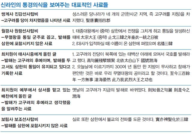 신라 최말기에 후백제와 고려가 등장했을 때 신라인들이 ‘나라가 어지럽다’며 한탄했던 것과 비교하면 결론은 명확하다. 신라인들은 발해 지역, 그러니까 고구려 영토 대부분을 자신의 땅으로 생각하지 않았다. 그랬기에 발해 건국 때 신라인들은 ‘나라가 분열된다’는 안타까움을 담은 어떤 기록도 남기지 않았고, 군사적 행동도 취하지 않았다. 발해의 멸망 때도 마찬가지였다.