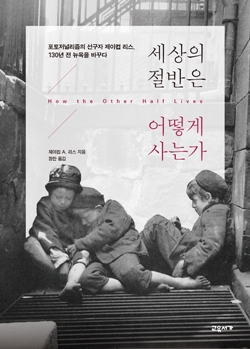 <세상의 절반은 어떻게 사는가>를 쓴 제이컵 A. 리스(1849~1914)는 ‘폭로 저널리즘’이라는 새 장르를 일군 언론인이다. 카메라를 든 사회부 기자였던 리스에게 뉴욕의 미로 같은 골목길은 취재거리로 넘쳐나는 현장이었다. 그는 막 도입된 카메라 플래시를 이용해 그전엔 렌즈에 담아낼 수 없었던 풍경을 포착했다. “빛이 어둠을 몰아냈다”는 말 그대로 그는 “플래시로 어둠의 세계를 빛의 세계로 이끌어냈다”.