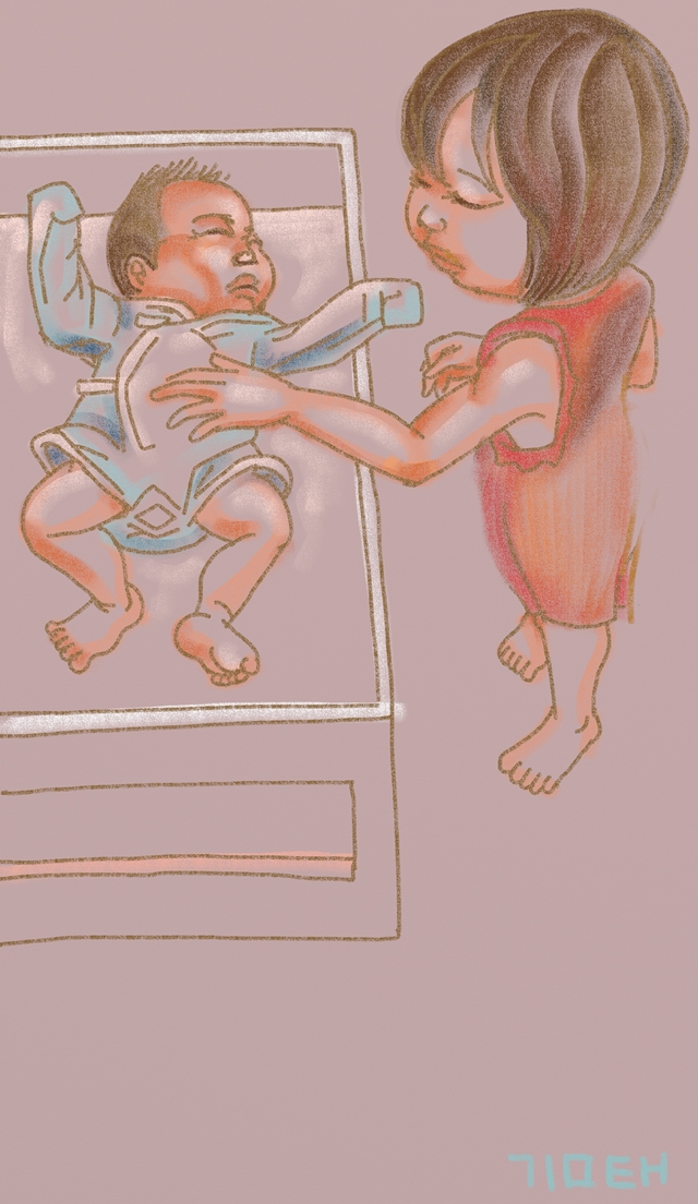 둘째님이 집에 온 지 달포가 지났다. 세 돌을 앞둔 첫째님의 심기를 살피는 것이 아빠의 일. 그러잖아도 어린이집에서는 첫째님의 ‘돌발 행동’에 놀랐다고 했다. 낮잠 자는 어린 친구한테 다가가 손을 치켜들더라는 것. 혹시 한 대 치려는 걸까? 선생님은 당황했고 첫째님도 울음을 터뜨렸다고 한다. 이야기를 듣고 아빠도 걱정.