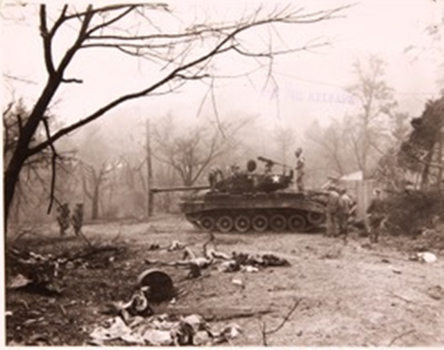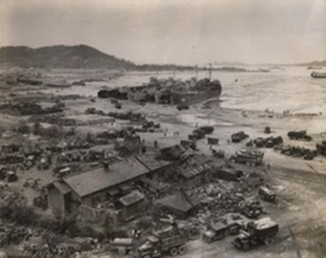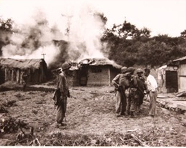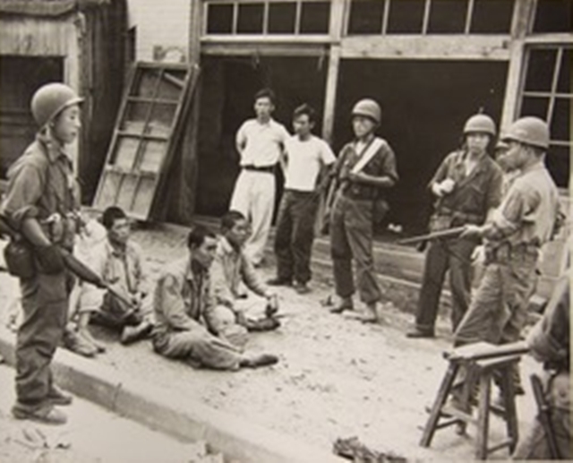 사진❺와 ❻은 작전지역에 있던 주민들이 겪은 참상과 공포를 보여준다. 사진❺는 월미도 주민이 미 해병대 병사들에게 월미도의 지형을 설명해주는 것을 시각화하고 있지만, 정작 내 눈을 사로잡은 것은 불타고 있는 민가였다. 월미도 상륙과 소탕전에 대한 사진이 꽤 많지만, 대부분 아군의 작전과 적군 포로만 피사체로 포착할 뿐, 주민과 마을의 피해는 철저히 사각화돼 있다.