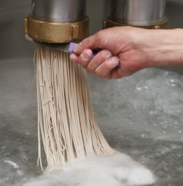 한 평양냉면집에서 메밀 등으로 만든 면을 뽑고 있다.