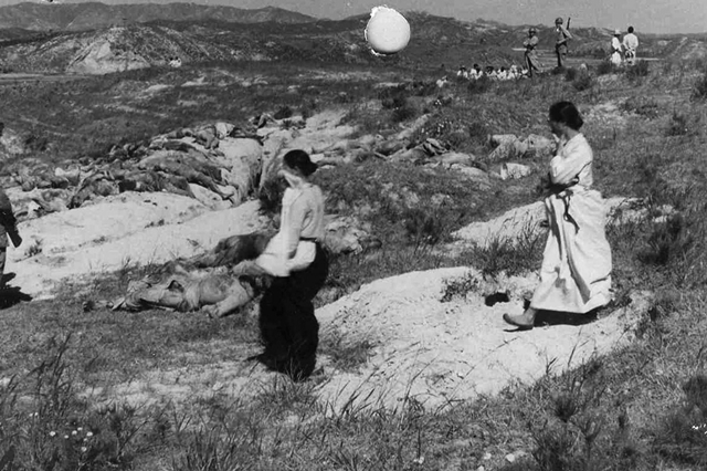 ❸ 미군은 대전형무소 학살 모습을 동영상으로 찍었다. 이 사진은 동영상 가운데 일부분인데, 전갑생 선생이 제공해주었다. 고마움을 표한다. RG 111-ADC-8405, National Archives Ⅱ 소장. 김득중 제공