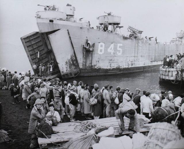 ❷ 흥남 해변에 있는 한국인 주민들이 수송선 LST 845로 소개되기를 기다리고 있다. 강성현 제공 강성현 제공