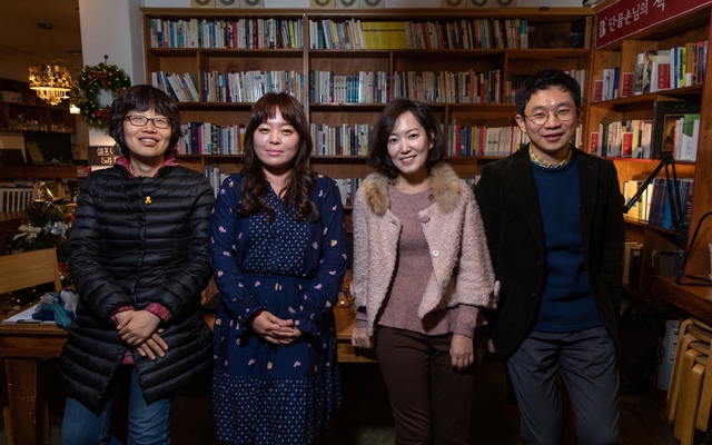 11월30일 서울 마포구 서교동에 있는 북카페에서 ‘마흔 토크’를 한 조영선씨, 정여울 작가, 이은정씨, 김영석씨(왼쪽부터).