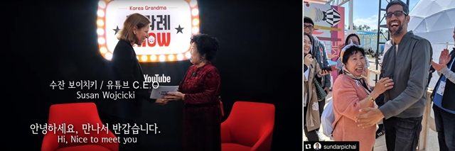 수전 보이치키 유튜브 최고경영자(왼쪽)에 이어 순다르 피차이 구글 최고경영자를 만난 유튜버 박막례씨. 박막례 SNS 게시물 갈무리