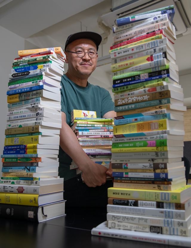 “(책을) 쌓으니 많아 보이네요.(웃음)”