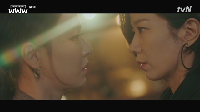 물론 이들에게는 ‘공식적인’ 남성 파트너가 존재한다. 배타미가 지치고 외로울 때마다 화사한 조명과 흩날리는 벚꽃 사이로 등장하는 열 살 연하의 남자 박모건(장기용)은 세파에 찌든 배타미에게 마지막 남은 순수를 일깨우는 존재다. 어장 속 물고기가 되기를 자처하며 관계를 지속하는 그는 밖에서 피 흘리며 돌아온 배타미의 상처를 치료해주고, 바쁜 배타미의 연락을 기다리다 지쳐 투정 부린다. (역시 어디서 많이 본 장면이다.) 거기에 각종 세제를 갖춰 화장실에 물때가 끼지 않게 관리할 줄 알고, 비가 쏟아질 때 겉옷을 벗어 배타미의 가방부터 감쌀 만큼 센스 있는 그의 캐릭터는 마치 이성애자 여성들의 파트너에 대한 다양한 욕망과 기대를 수집해 만들어낸 인공지능 로봇처럼 보일 정도다. 송가경을 위해 불법행위까지 저지르며 헌신하는 오진우(지승현), 상냥하고 해맑은 성품으로 차현의 마음을 움직이는 설지환(이재욱) 등 <검블유>의 남자들은 모두 유니콘 같은 ‘조신남’이자 순정파다. 그러나 그들의 존재는 주인공들에게 위안이 될지언정 이야기 중심에 놓이지 못한다. <검블유>의 여자들에게는 남자들이 모르는 복잡한 사연, 치열한 고민, 해결해야 할 일이 있기 때문이다. 배타미가 자신의 이름을 ‘연예인 스폰서’ 지라시에 올린 오진우에게 복수하기 위해 “네가 필요해”라며 부르는 상대는 박모건이 아닌 차현이다. 앞서 두 사람은 포털의 실시간 검색어 삭제를 둘러싸고 격한 토론을 벌인 바 있다. 그러나 배타미와 대립하던 차현이 배타미의 한마디에 기꺼이 야구방망이를 들고 달려와 함께 오진우의 차를 박살 내는 광경은 독특한 카타르시스를 제공한다. 공적 관계의 여성들이 이유 없는 적대감이나 소모적인 경쟁심을 드러내는 대신, 공동 목표를 위해 서로 비판하거나 지지하고 연대하는 구도는 ‘여자의 적은 여자’ 구도를 가볍게 뛰어넘어 새로운 방향으로 달려나간다. 배타미, 송가경, 차현이 개인적 가치관과 업무상 원칙, 외부 압력 사이에서 펼치는 각각의 주장은 포털이 가장 거대한 미디어가 된 시대에 사업자, 그리고 사용자의 윤리적 성찰에 화두를 던진다. 내 욕망은 내가 만드는 거야 세 주인공 중 유일하게 가족사가 나오고 그 가족으로 인해 자유를 박탈당한 송가경을 제외한 배타미와 차현이 어딘가에서 뚝 떨어진 사람처럼 홀로 존재한다는 점 또한 <검블유>의 흥미로운 지점이다. 이들에겐 ‘시집 못 간 딸’을 타박하는 부모도 없고, 옛 남자친구(이동욱)조차 배타미가 비혼주의자였음을 드러내기 위해 나온 존재다. 너라는 존재를 설명 혹은 납득시켜보라는 요구에 배타미는 “부모님 원수를 갚거나 전남편에게 복수”하려는 사연 같은 건 없다며 “내 욕망엔 계기가 없어. 내 욕망은 내가 만드는 거야”라고 선언한다. <검블유>는 이처럼 현대적 개인들이 각자의 윤리와 삶의 지향에 따라 행동하고, 타인의 그것과 부딪치더라도 수용하거나 존중할 수 있다는 가능성을 제시한다. 마침 그 세계의 다수를 구성하는 것은 대담하고, 다혈질이고, 냉정하고, 야비하고, 탐욕스럽고, 엉뚱한 여성들이다. 그들이 함께 일하고, 승부를 걸고, 고뇌하고, 성장하는 이야기가 어디로 흘러갈지 짐작할 수 없어 점점 더 재밌어진다. 최지은 칼럼니스트