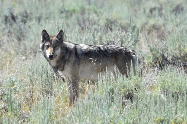 2011년 옐로스톤 국립공원의 라마르 계곡에 한 늑대가 서있다. 1990년대 중반 재도입 이후 옐로스톤에는 현재 10개 무리 약 100마리의 늑대가 살고 있다. 위키미디어 코먼스 제공