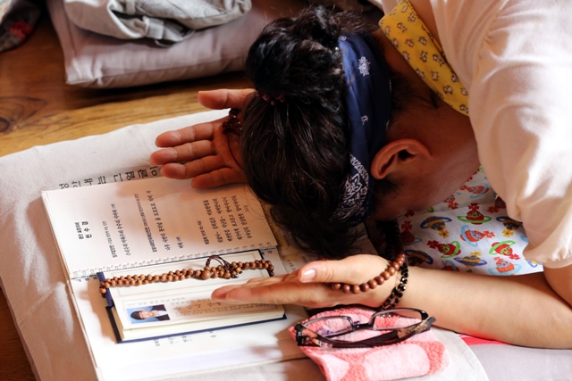 대학수학능력시험을 100여 일 앞둔 날, 학부모가 절에서 자녀의 학업 성취를 빌고 있다. 한겨레