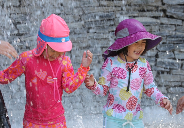 서울 송파구 성내천 물놀이장에서 노는 아이들. 한겨레 백소아 기자
