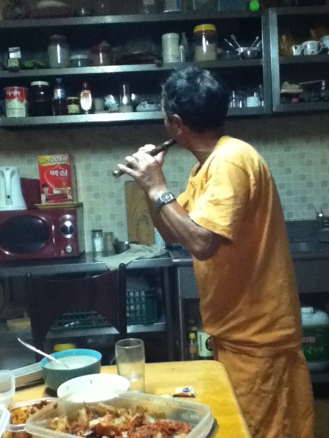 개농장에서 만난 박씨 아저씨. 어릴 적부터 피리 부는 걸 좋아했다는 그는, 어느 날 함께 술을 마시다 한껏 흥이 오르자 갑자기 여행가방을 뒤져 피리를 꺼내더니 너무나 멋지게 연주했다. 한승태 제공