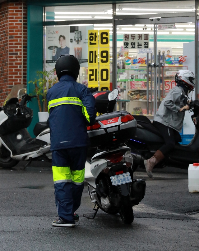 현대중공업 작업복을 입고 배달 아르바이트를 하는노동자. 류우종 기자