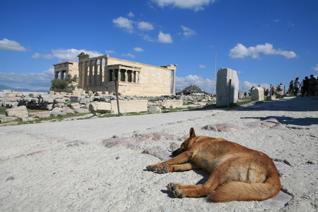 그리스 아테네 파르테논 신전에서 개가 낮잠을 자고 있다. 남종영 기자