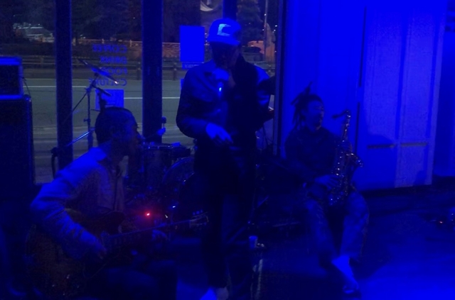 10월5일 밤 부산 중구 카페 ‘노티스’에서 열린 ‘김의성과 친구들의 파티 올 나잇’에서 백현진(가운데)이 노래하고 있다.