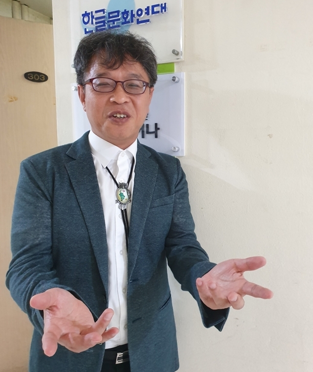 이건범 한글문화연대 대표는 한글날이면 바빠진다. 연대는 공공 영역에서 쉬운 말을 쓰자는 운동을 전개하고 있다. 김아리