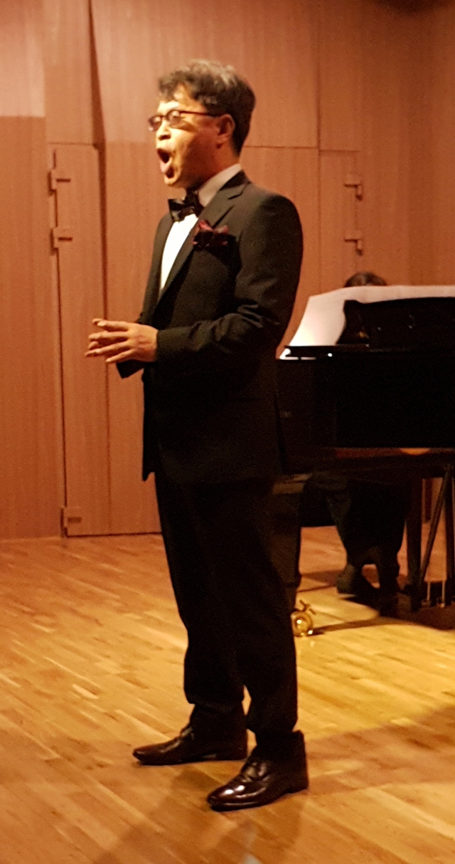 그의 요즘 재미는 노래다. 지난 3월 독창회에서 노래를 부르는 이 대표. 이건범 제공