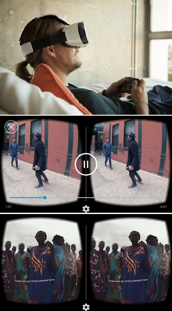 위쪽부터 삼성전자 제공, 뉴욕타임스 VR 화면 갈무리