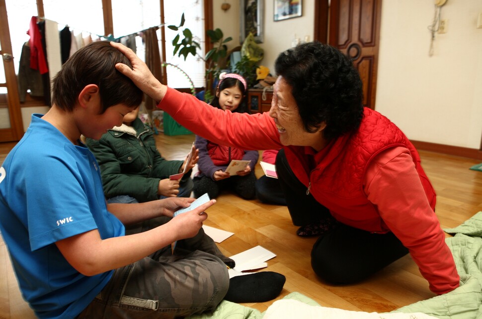 늙지 않은 때에 찾아오는 생식세포의 생산 중단이 다른 포유류에서도 관찰된다. ‘할머니 가설’이 포유류에도 적용될 수 있는 것이다. 아이의 머리를 쓰다듬어주는 할머니. 류우종 기자
