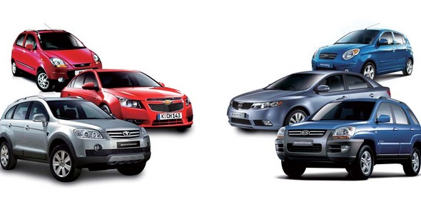 왼쪽 위부터 GM대우의 마티즈·크루즈·윈스톰, 오른쪽 위부터 기아차의 모닝·포르테·스포티지.