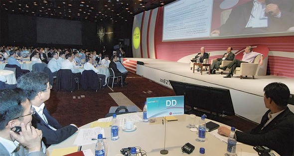 지난 7월24일 서울 워커힐 호텔에서 열린 LG전자 전사 임원회의에서 임원들이 남용 LG전자 부회장이 말하는 것을 지켜보고 있다. 엘지전자 제공