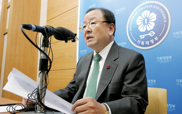 강만수 기획재정부 장관이 지난 12월16일 경기 과천 정부종합청사 브리핑룸에서 ‘2009년 경제운용 방향’을 밝히고 있다. 한겨레 김명진 기자