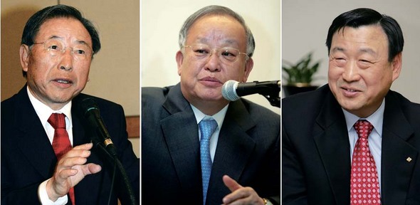 전경련·대한상의·무역협회 회장 임기가 2월로 끝남에 따라 다음 회장이 누구인지에 관심이 쏠리고 있다. 왼쪽부터 조석래 전경련 회장, 손경식 대한상의 회장, 이희범 무역협회장. 한겨레 김경호·한겨레 자료·한겨레 자료(왼쪽부터)