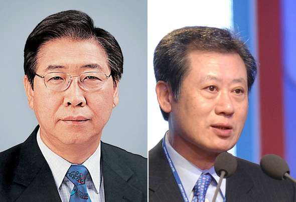 이구택 포스코 회장의 후임으로, 정준양 (61·왼쪽) 포스코건설 사장과 윤석만 (61·오른쪽) 포스코 사장이 물망에 오른다.