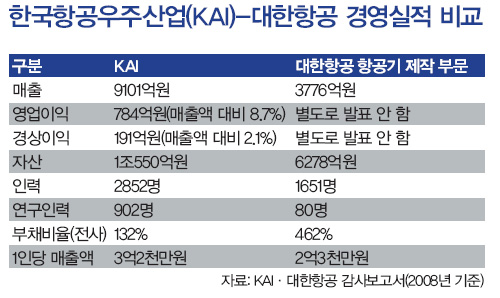 한국항공우주산업(KAI)-대한항공 경영실적 비교