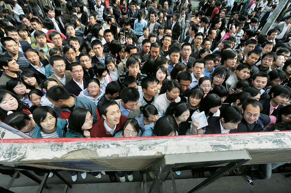 ‘경제위기 속 대졸 구직자만 600만 명!’ 지난 4월12일 중국 간수성 란저우에서 열린 취업박람회에서 대학 졸업을 앞둔 중국 젊은이들이 취업정보 게시판 앞을 발 디딜 틈조차 없이 채우고 있다. 사진 REUTERS/ CHINA DAILY