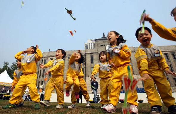 사회복지공동모금회, 한국사회복지협의회, 사회공헌정보센터, 전국경제연합회가 공동으로 개최한 ‘대한민국 사회공헌 대축제’가 2008년 10월17일 서울광장에서 열린 가운데, 어린이들이 종이비행기를 날리고 있다. 사진 한겨레 신소영 기자