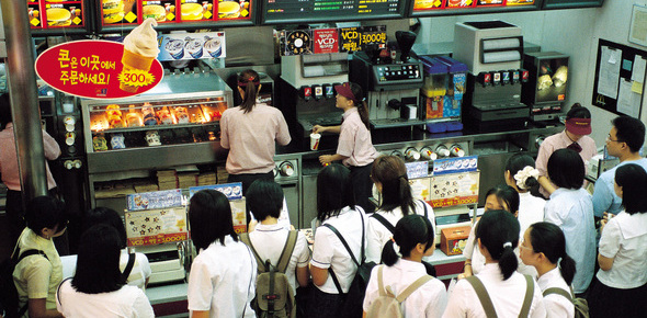 표준화된 접객. ‘맥도널드화’를 통해 청소년은 어른과 똑같은 대접을 받으며 돈의 힘을 더욱 실감할 수 있게 됐다. 사진 한겨레 자료