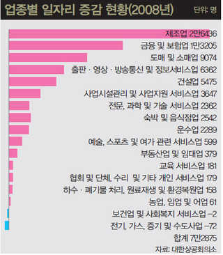 업종별 일자리 증감 현황(2008년)
