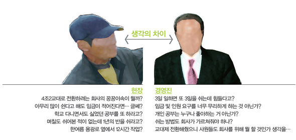 4조2교대제 생각의 차이 (※ 이미지를 클릭하면 크게 볼 수 있습니다)
