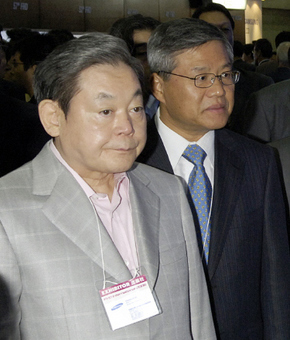 삼성그룹은 2008년 4월 이후 사라진 옛 전략기획실과 다름없는 새 그룹 조직을 복원해 책임자로 김순택 삼성전자 부회장을 임명했다. 김 부회장(오른쪽)이 이건희 회장과 함께 2006년 일본 요코하마 평판디스플레이 전시회를 참관하고 있다.연합