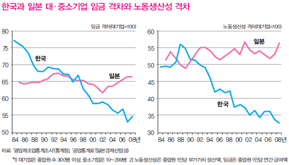 한국과 일본 대·중소기업 임금 격차와 노동생산성 격차