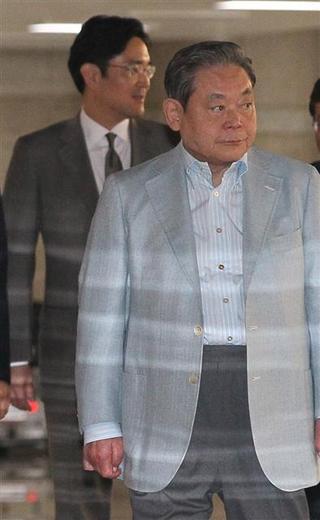 이건희 삼성 회장이 지난 6월 일본을 방문하려고 김포공항 출국장을 찾았다. 그의 뒤로 이재용 삼성전자 사장의 모습이 보인다. 연합