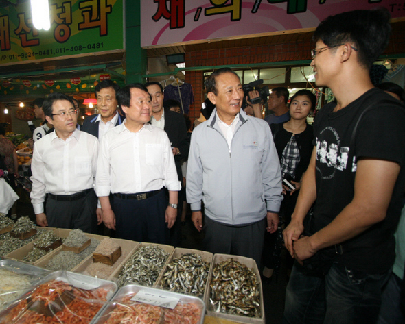 민생 현장을 찾은 권혁세 금융감독원장(왼쪽에서 첫번째). 감사원의 감사보고서를 보면, 서울시 등 6개 지방자치단체는 법을 어긴 약 1천 개 업체에 대해 행정 조처를 취하지 않은 채 불법영업을 방치했다. 금감원도 민원인 상담을 통해 확인된 6천여 건의 불법행위 가운데 95% 이상을 겅찰에 알리지 않았다. 서울시 등 지자체와 금감원 모두 서민금융 관리에 소홀했다. 미소금융중앙재단 제공