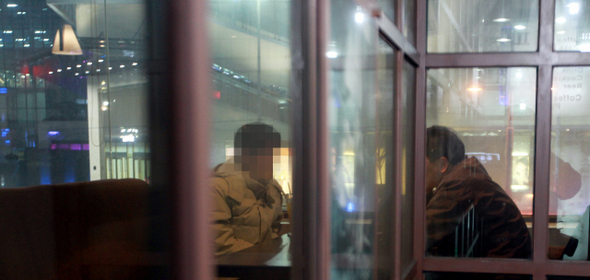삼성전자의 홍아무개 선임(왼쪽)이 회사 쪽 LCD 사업부문의 분할 결정에 대한 부당함을 <한겨레21> 기자에게 설명하고 있다. <한겨레21> 김경호