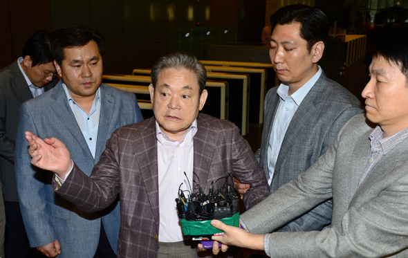 삼성 임직원들은 새벽 출근으로 몸살을 앓는다. 이건희 삼성전자 회장이 새벽에 출근하자 미래전략실과 계열사들까지 이를 추종해 벌어지는 진풍경이다. 이건희 회장이 서울 서초동 본사에 출근하며 기자들의 질문에 답하고 있다.