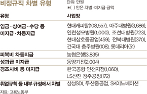 비정규직 노동자는 대선 공약집 안에서만 대우받는 걸까. 현실에선 여전히 광범위하고 꼼꼼하게 차별당했다. 고용노동부가 비정규직을 많이 채용한 60개 사업장을 조사해보니 15곳에서 차별 사례가 적발됐다. 유형은 다양했다. 현대캐피탈은 상여금을 매달 정규직에게만 지급했고, 농협은행은 분기마다 정규직에게 피복비를 기간제 노동자보다 5만원 더 챙겨줬다. SK이노베이션은 정규직만 회사의 휴양시설을 사용할 수 있게 했다. 대선 후보자들이 똑같이 공약한 비정규직 철폐는 훌륭하다. 그러나 당선되면 있는 법도 안 지키는 이런 염치없고 쪼잔한 기업들부터 우선 단속하는 건 어떠실는지? 대선 후보들은 15개 기업의 이름을 외워 TV 토론에서 읊을 것을 당장 공약하라!