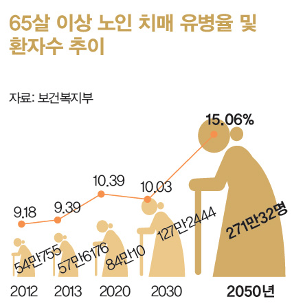 나이가 많을수록, 학력이 낮을수록, 남성보다는 여성에게 서러운 일이 하나 더 늘었다. 보건복지부가 발표한 ‘2012년 치매 유병률(65살 이상 노인 중 치매 환자가 차지하는 비율) 조사’ 결과를 보면, 무학력자는 1년 이상 교육을 받은 사람보다 9.17배, 여성 노인은 남성보다 2.58배 치매에 걸릴 가능성이 높았다. 드라마에서나 보던 ‘수애병’은 이제 현실이다. 호환·마마보다 무서운 치매를 예방하려면? 보건복지부가 내놓은 예방 수칙 주요 내용은 다음과 같다. △손놀림을 많이 하고, 음식을 꼭꼭 많이 씹기 △흡연은 만병의 근원 △과도한 음주 금지 △맵고 짠 음식 피하기 △일주일에 2회 이상 30분 넘게 땀이 날 정도로 운동 △사람들과 어울려 외로움을 피할 것 △치매가 의심될 땐 보건소에서 상담을.