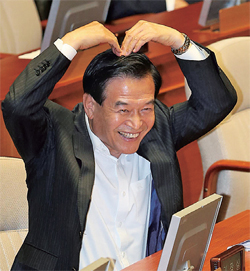포토제닉상은 서상기 국회 정보위원장 몫이 됐어요. 수상작이 기가 막혀요. 그가 지난 6월27일 국회 본회의장에서 야당 의원들을 향해 하트를 날리는 사진이에요. 양팔로 완벽한 하트를 만들어낸 ‘포즈’, 가지런한 치아를 대방출한 ‘표정’, 북방한계선(NLL) 파문을 일으킨 데 대한 야당의 사퇴 요구에도 해탈한 듯한 무념무상의 ‘내면 연기’가 10점 만점에 10점이에요. 의원님, 그런데 웃음이 나오긴 하나봐요.